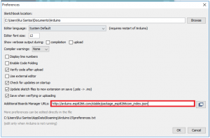 - copy and paste the following link http://arduino.esp8266.com/stable/package_esp8266com_index.json into the blackbox next to Additional Board manager