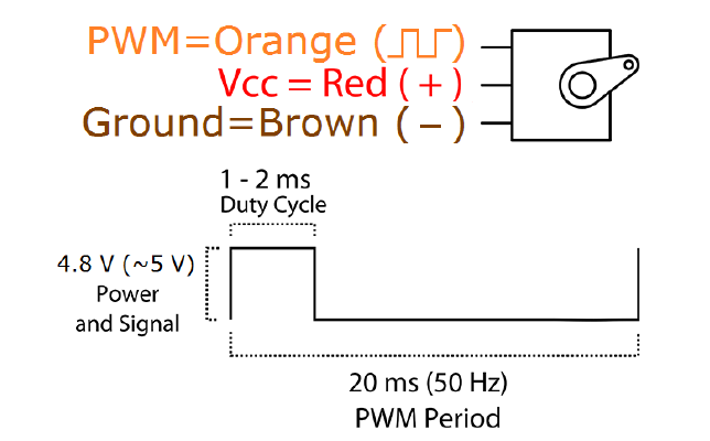 Position “0” (1.5 ms pulse) is middle, “90” (~2ms pulse) is all the way to the right, “-90” (~1ms pulse) is all the way to the left.