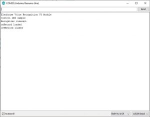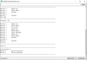 again”, you need repeat your voice again. If these two voice are matched, Serial Monitor prints