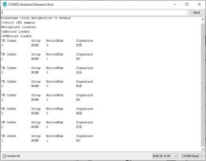 6. Train Voice Recognition Module. Send sigtrain 0 On command to train record 0 with signature